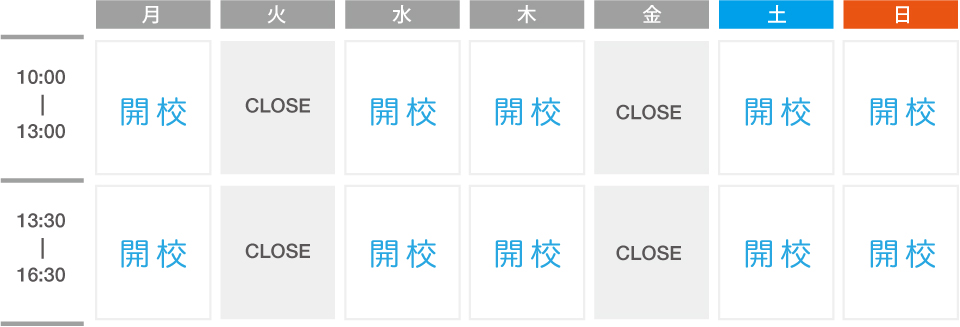 ※スクールスケジュールにより休校する場合がございます。ご了承下さい。